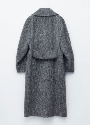 Wool Double Breasted Maxi Coat With Bold Shoulder Details In Grey
