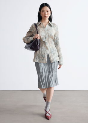 Knitted Semi Sheer Polo Top With Fluted Collar In Dark Grey