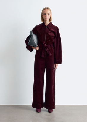 Wide Leg Stretch Jumpsuit With Tie Waist