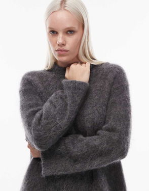 Mohair Super Soft Hairy Knit Sweater In Grey