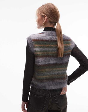 Mohair And Wool Hairy Knit Waistcoat Tank In Multi Stripes