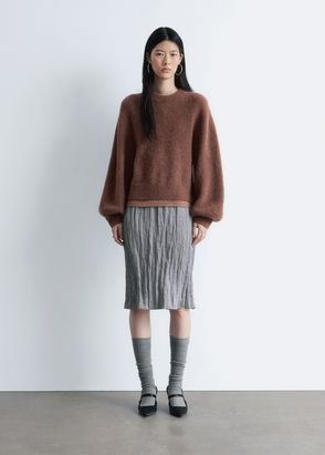 Wool And Mohair Mix Jumper With Volume Sleeves In Off White