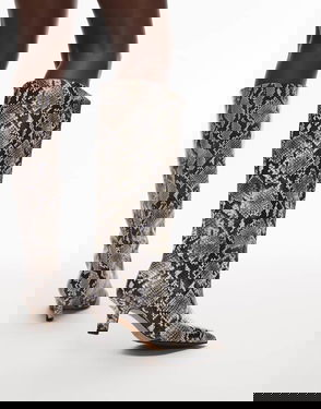 Real Leather Knee High Heeled Boots With Suede Lining In Reptile Snake Print