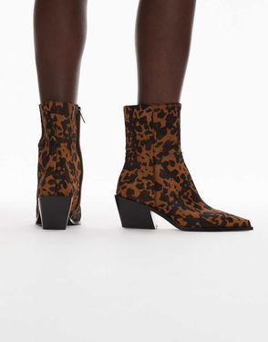 Leather Pointed Toe Ankle Boots In Brown Reptile Snake Print
