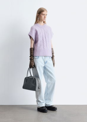 Wool Blend Cable Knit Sweater In Dark Lilac
