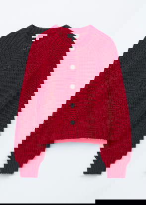 Alpaca And Wool Chunky Knit Cardigan With Balloon Sleeves In Red