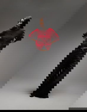 Pure Merino Wool Ribbed Knitted Top With Flare Sleeves In Red