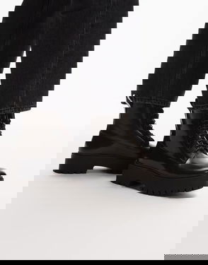 Pure Leather Chunky Leather Lace Up Boots In Dark Brown