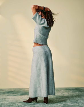 Co-ord Mohair Blend Knitted Maxi Skirt In Green