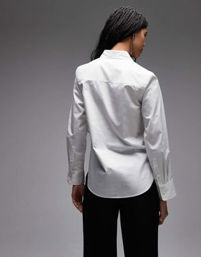 Cotton Rich Shirt With Tailored Waist Detail In White