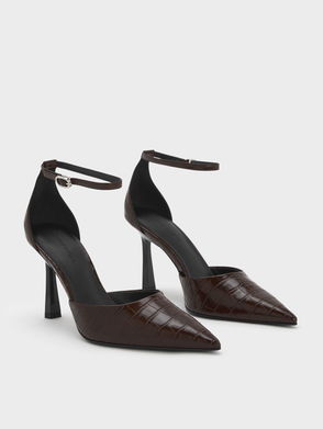 Croc-Effect Pointed-Toe Ankle-Strap D'Orsay Pumps