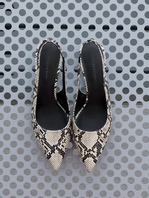 Leslie Snake-Print Metallic-Accent Slingback Pumps