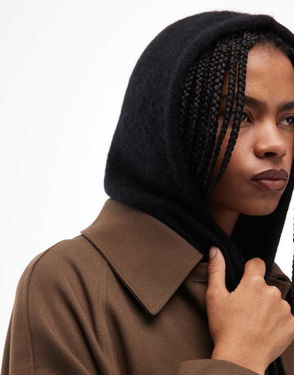 Alpaca And Wool Hairy Knitted Hood In Black