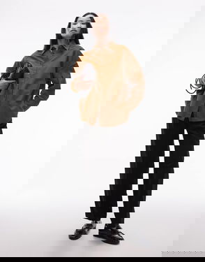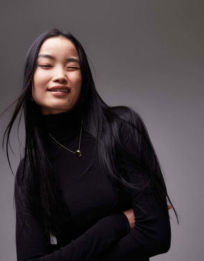 Sheer Jersey Rib Long Sleeve Top With High Neck In Black
