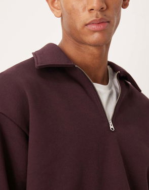 Pure Cotton Half Zip With Polo Collar In Burgundy
