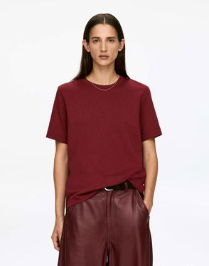 Rich Cotton Stretch Heavyweight Interlock Short Sleeve T-shirt In Burgundy