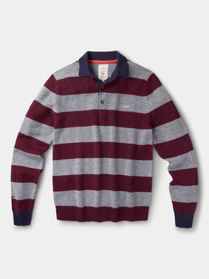 Belmont Knitted Rugby Top, Grey Marl/Burgundy Stripe