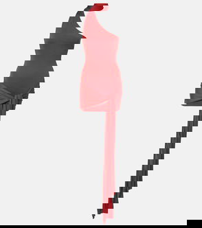 Off-Shoulder Ribbed-Knit Lamé Minidress