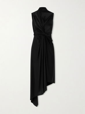 Asymmetric Draped Knotted Satin-jersey Dress
