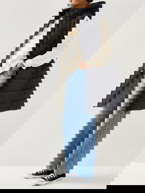 Track Line Long Quilted Hooded Coat