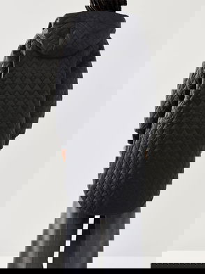 Track Line Long Quilted Hooded Coat
