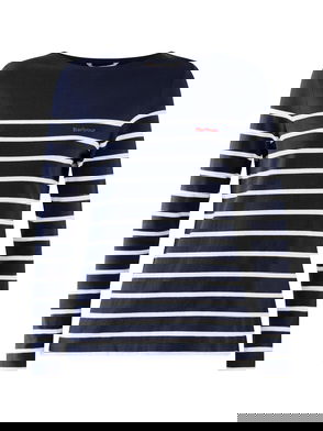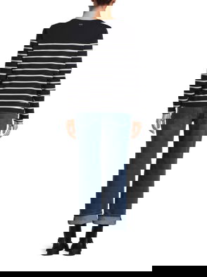 Caroline Striped Cotton Sweatshirt, White/Navy