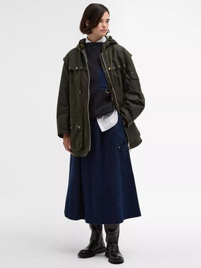 Aberford Wax Jacket With Hood And Popper Details In Olive Green