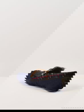 Pendle Knitted Cardigan In Navy/hessian Tartan
