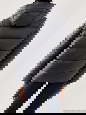 Kailyn Puffer Jacket In Black With Tartan Lining