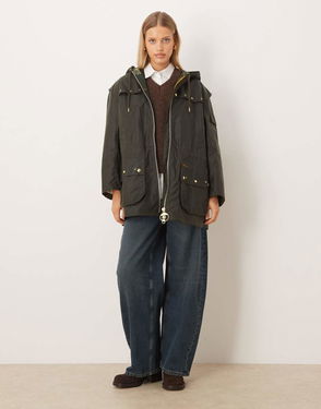 Aberford Wax Jacket With Hood And Popper Details In Olive Green