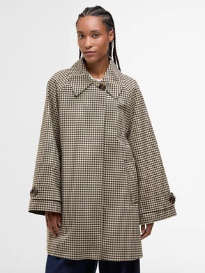 Kennedy Houndstooth Check Showerproof Car Coat, Sage/Mist
