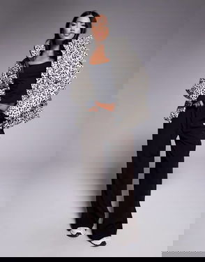Leopard Zip Thru Jacket With Contrast Cord Collar In Beige