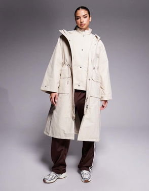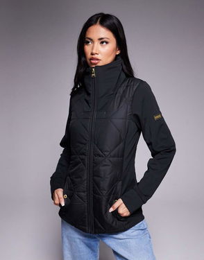 Oversized Quilted Jacket With Fleece Sleeves In Black & Beige