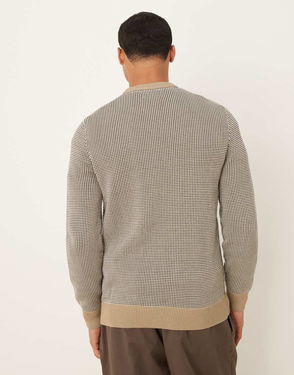 Wells Birdseye Cotton Crew Neck Jumper, Washed Stone