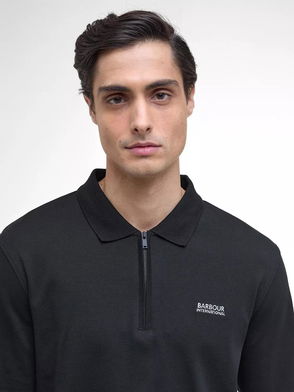 International Innes Interlock Cotton Regular Fit Long Sleeve Polo Shirt, Black