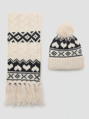 Kids' Heart Fair Isle Bobble Hat, Light Beige