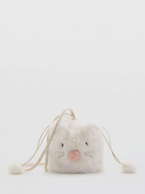 Kids' Zurib Faux Fur Drawstring Cat Bag, Light Beige