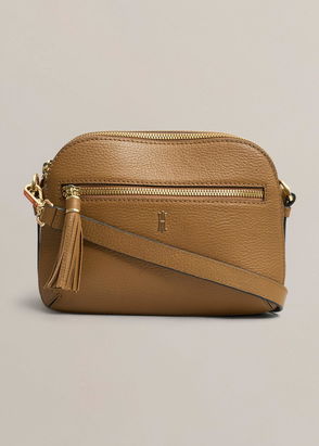 Tulip Street Leather Small Drawstring Cross Body Bag In Toffee