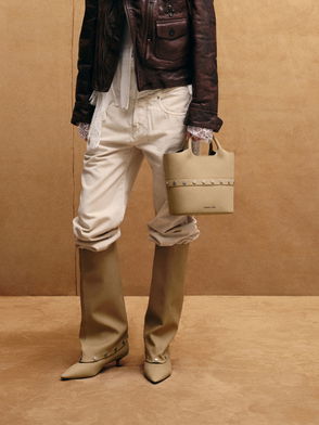 Bobbie Twill Studded Convertible Two-Way Bucket Bag