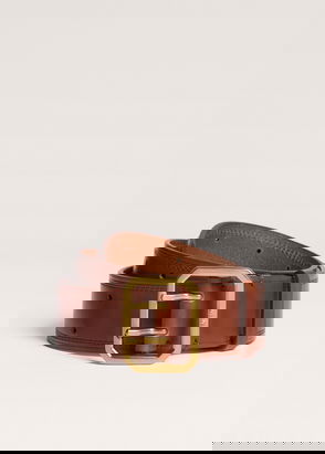 Leather Buckle-Hardware Belt In Tan