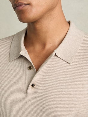 Fine-Rib Short-Sleeve Polo Shirt In Oatmeal