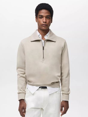 Cotton Blend Micro Logo Crew Sweatshirt, Deep Beige Slub