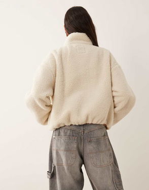 Abercrombie & Fitch High Neck Zip Up Fleece In Cream