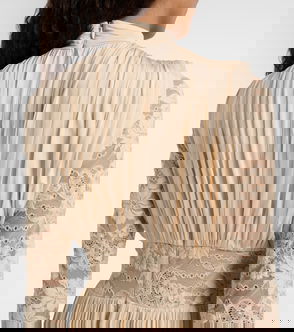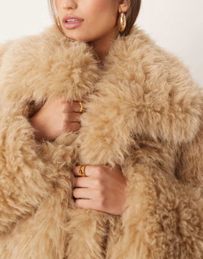 Faux Fur Longline Coat With Exaggerated Collar In Beige