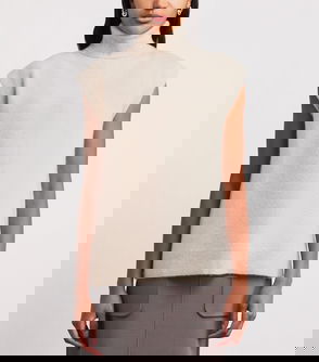 Alpaca And Mohair Sweater With Sculptural Sleeves And Split Side In Beige