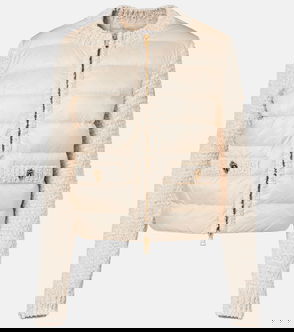 Down-paneled Bouclé-trimmed Zip-up Cardigan