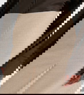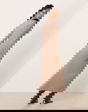 Abercrombie & Fitch Long Sleeve V Neck Fitted Maxi Dress In Beige