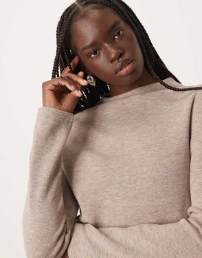 Canela Ruched Side Long Sleeve Top Co-ord In Oatmeal