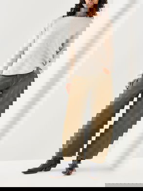 V Neck Knitted Jumper With Contrast Trim In Beige
