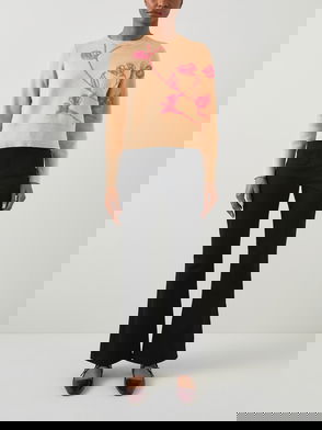 Henrietta Camel & Bright Pink Flower Detail Jumper